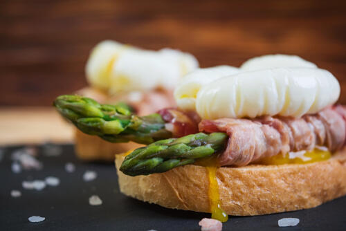 最後にアスパラの肉巻きミラノ風を紹介する。作り方は基本の作り方と同じくサッと茹で冷ましたアスパラに豚バラ肉を巻き塩こしょうしたら、フライパンに油を熱して焼く。器に盛り付け熱いうちに卵黄をのせ、粉チーズと粗挽き黒こしょう、オリーブオイルをかければ完成だ。ほかにもカレーにトッピングしたり、肉の代わりにベーコンやちくわを巻いたり、タルタルソースをつけて食べても美味しい。