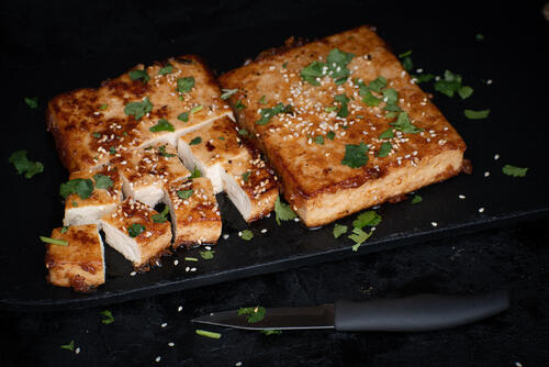 次に豆腐ステーキのカロリーや含まれる栄養成分を紹介しよう。先述したシンプルな豆腐ステーキのカロリーは、1人前あたりで212kcalだ。淡白な味になりがちな豆腐ステーキだが、コクのあるバターしょうゆで味付けし、ゴーヤとハムをトッピングした場合のカロリーは、1人前あたりで310kcalだ。