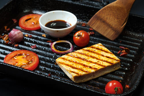 最初に豆腐ステーキの作り方を紹介しよう。味噌汁や鍋料理に入れたり、冷奴で食べたり、副菜として味わうことの多い豆腐だが、豆腐ステーキはメインディッシュにもなりうるひと品だ。こんがりとした焼き目に食欲をそそられるという人もいるだろう。美味しく作るポイントは水気をしっかりきってから焼くこと。
