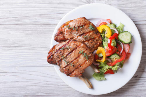 次にピリ辛ながらも甘めで、子どもでも美味しく味わえるサルサソースを紹介しよう。使用する材料は、おろし玉ねぎ・おろしにんにく・トマトケチャップ・はちみつ・タバスコ・塩・こしょうでOK。保存容器に材料をすべて入れて混ぜたのち、豚肉も加えサルサソースをもみ込む。次に表面にラップをピッタリかぶせ、フタをして冷蔵庫に入れ1~2時間ほど漬けておく。焼くときはペーパータオルで汁気を軽く拭くこと。こんがりと焼き色がついたポークステーキはごはんとの相性はもちろん、アルコールがすすむ美味しさだ。