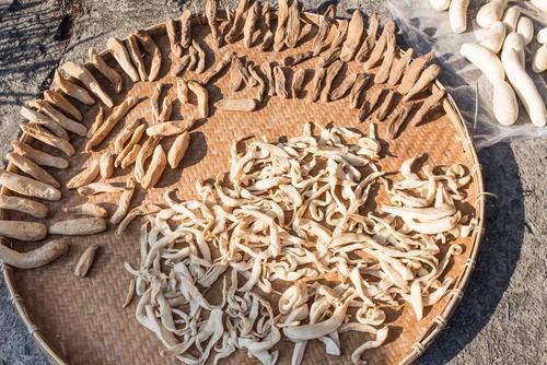 大根は天日干しすることで、水分が抜けるため保存性がよくなる。大根の輪切りや皮を干す方法もあるが、切り干し大根と呼ばれているのは千切りや細切りを干したものだ。千切りや細切りの大根をザルにのせ、2~4日ほど天日干しすると切り干し大根が完成する。旨い切り干し大根にするには、干す過程でときどき上下を返すこと、寒い時期で風のある晴れた日に干すことがポイントだ。