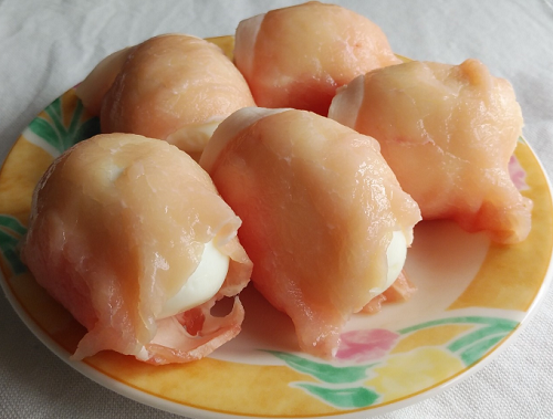 茹で卵で作りたいときは、鍋に常温に戻しておいた卵を入れ、かぶるくらいの水と少量の酢を加え火にかける。沸騰したら弱火にし、さらに7~8分ほど茹でる。最後に水にとり冷まして、殻をむき水気を拭けばOK。あとは薄切り肉を1枚ずつ巻き付け、さらに上から小麦粉を少しまぶして焼き、味付けするだけだ。食べごたえがあり夕食のメイン料理はもちろん、アルコールのおともにピッタリだ。