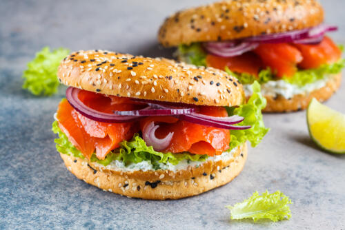 サーモンマリネはサンドイッチの具材に使うのがおすすめ。サーモンマリネ・レタス・クリームチーズなどを挟めば、見た目も華やかなサンドイッチが作れる。残ったサーモンマリネを使ってオシャレな朝ごはんを作ってみるとよいだろう。