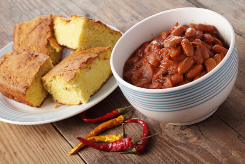 コーンブレッドはそのまま食べるとほんのり甘く、コーンミール特有のポロポロとした食感を楽しめる。本場アメリカでは日常的に食べるのはもちろん、毎年11月の第4木曜日にある感謝祭と呼ばれるイベントや、その週末などによく食べられているそうだ。そのまま食べたり、チリビーンズと一緒に食べられたりすることが多い。チリビーンズはアメリカでよく作られる家庭料理で、豆をトマトやスパイスなどでピリ辛に味付けしたもの。材料さえ揃えれば簡単に作れるので、コーンブレッドと合わせて作ってみてもよいだろう。