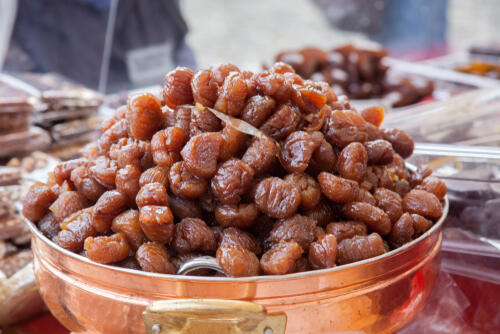 スーパーの屋台などで見かける甘栗も、マロングラッセに使える。もうすでに火が通っており食べられる状態の甘栗は、そのままグラニュー糖を入れて煮るだけ。皮をむかなくてよいので、時間のない人にはおすすめ。しかも自分で砂糖の量を選べるので、手作り感も出せる。