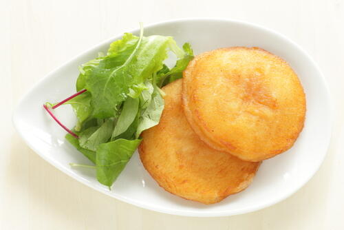 次に紹介するいももちのタレは、バターしょうゆタレだ。作り方はいももちの生地をフライパンで焼く。焼きあがりにしょうゆを入れて絡め、器に盛り付けてバターを適量のせたらバターしょうゆタレのいももちの完成だ。好みで汁をきったホールコーン缶を生地に混ぜて作ると食感も楽しめるだろう。
