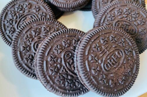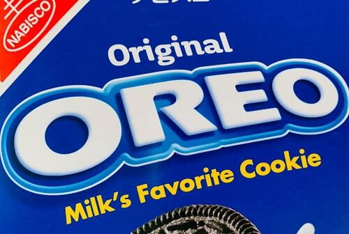 オレオはダークなチョコレートクッキーでクリームを挟んだお菓子。この味のコントラストが美味しさの要である。クッキーをはがして、2枚に分けて食べるという人も多いようで、公式ホームページによると約半数の人がそのように食べているらしい。
