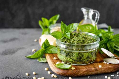 とはいえ、バジルソースが余ってしまった場合は冷蔵保存が可能である。冷蔵保存の場合は、1週間ほどが最大保存日数である。口の広いガラスの瓶にバジルソースを入れ、上部はオリーブオイルでカバーすると酸化やカビを防ぐことができる。ガラス瓶に入れたバジルソースは、1回で使いきれない場合は瓶の口の部分を常に清潔に保ち、使用ごとにオリーブオイルで上部をカバーしよう。