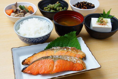 鶏肉と大根の煮物に合わせた献立なら、焼き魚がおすすめ。魚を主菜、煮物を副菜にしてサラダや冷奴と味噌汁、ごはんをプラスすれば一汁三菜の献立が作れる。どれもさほど手間のかからない料理だが、品数が多いので豪華な食卓になるだろう。味噌汁はにんじんやほうれん草などの緑黄色野菜を使うとよりバランスも見ためもよくなる。焼き魚には鮭やサバなどいろいろな種類があるので、毎回種類を変えるだけでも献立のバリエーションが豊かになるだろう。