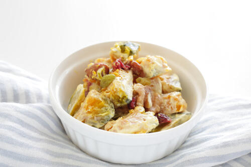 かぼちゃは加熱後すぐにフォークを使って、好みの大きさになるまでマッシュしていこう。マッシュしたかぼちゃと玉ねぎの粗熱がとれたら、マヨネーズで和えていく。最後に塩コショウで味の調整をしたら完成だ。