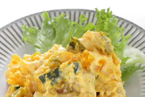 また、玉ねぎに関していうと、お湯で茹でるよりも電子レンジで加熱をしたほうが辛さを軽減できる。電子レンジで加熱したほうが玉ねぎの甘みをしっかりと感じられるかぼちゃサラダを作ることができるのだ。