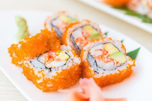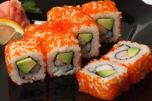 カリフォルニアロール1本あたりのカロリーはおよそ600kcal程度である。使用する食材などによっても前後するので、気になる場合は具材を工夫しよう。