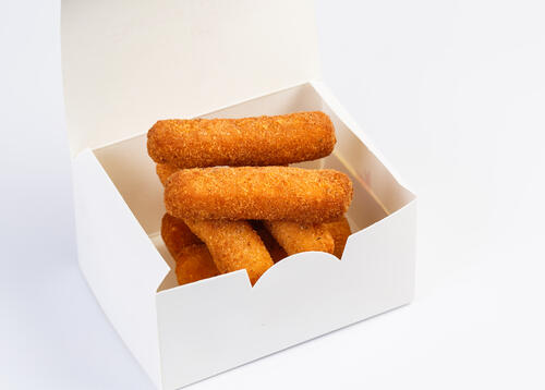 チーズスティックと聞くと棒状に成型されたチーズを思い浮かべるだろう。たしかに棒状であることには間違いないが、モッツァレラチーズスティックの場合は表面に衣がついている。