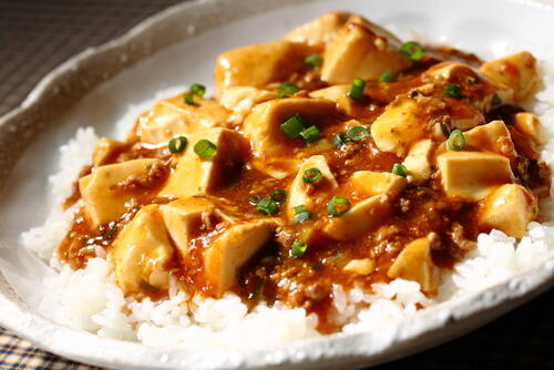 豆腐丼にちょっとボリュームがほしいときにおすすめなのが、カレー豆腐丼だ。耐熱ボウルにカレールウと水を入れて電子レンジで1分ほど加熱する。そこにめんつゆと水溶き片栗粉を加えてよく混ぜ、角切りにした豆腐を加えて電子レンジで2分ほど温める。ごはんの上に温めたルウをかけて温泉卵と青ネギをのせたら完成だ。カレー味のマーボ―丼のような味わいでごはんとの相性バツグンだ。