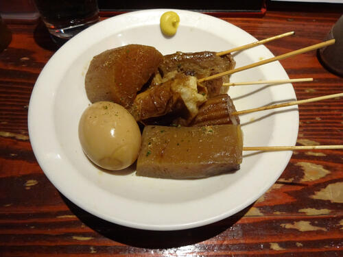 味噌おでんとは、味噌で煮込んだ名古屋名物のおでんだ。名古屋のある愛知県では味噌文化が発展しており、ほかにも味噌カツや味噌煮込みうどんなど、さまざまな味噌を使った料理があるのも特徴だ。味噌は地域によって違いがあり、白味噌、赤味噌、合わせ味噌などがある。名古屋で定番の味噌は赤味噌で、濃い褐色をしている。そんな赤味噌を使って作るのが味噌おでんだ。見ためは濃い色をしており、見慣れていない人にしてみればビックリするかもしれないが、とにかく濃厚でまろやかな味がクセになると、名古屋を中心に人気のあるおでんなのだ。