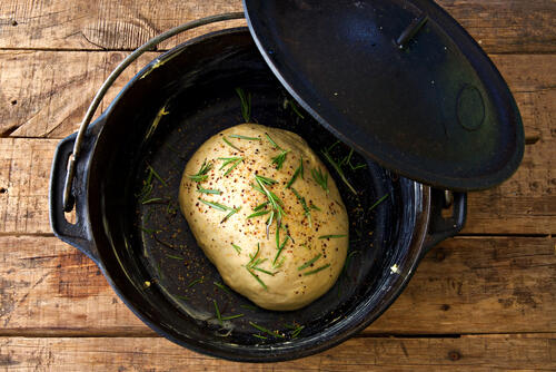 プロの料理人も使用していると話題のストウブという鍋を使ってこねないパンを作ることもできる。ストウブはもともと鋳物ホーロー鍋なので、熱が伝わりやすいと人気がある。そんなストウブを使えばこねないハードパンを作ることができるのだ。強力粉、塩、イースト、水で捏ねた生地を丸めてクッキングシートをしいたストウブに入れて発酵させ、ふたをして250℃のオーブンで30分ほど焼きあげる。外はパリッとして中はしっとりとしたこねないハードパンが完成する。