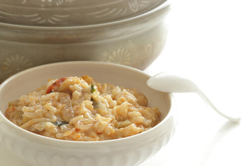 鍋の〆といえば、おじやが王道だ。石狩鍋も例外ではない。味噌ベースのスープが絡むため、しょうゆなどのすっきりしたスープとはまた違った味を楽しめる。のりやねぎなどの薬味、好みによってはチーズを入れてリゾット風にするのもよいだろう。
