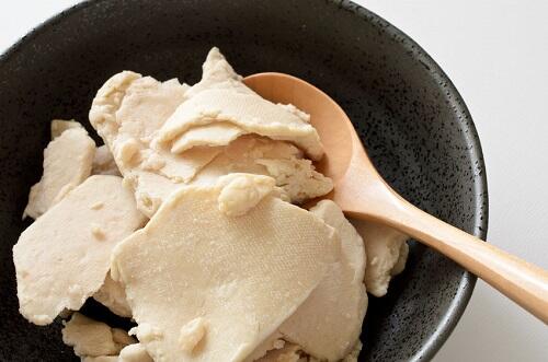 酒粕は、形状によって硬さが異なる。なかでも日本酒を絞ったあとの板粕と呼ばれるものは、圧縮された状態のため、料理などに使う場合には柔らかくしなければ調理しにくい。酒粕を30~40℃ほどのぬるま湯に浸したり、小さくちぎってミキサーにかけたりして柔らかくして使うのが基本だ。ほかにも、レシピに含まれる調味料で酒粕を伸ばしてから使うのもいいだろう。