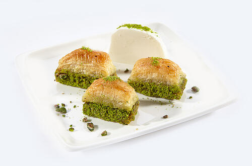パイのような生地にクルミやピスタチオなどのナッツ類を包んだお菓子。バクラヴァそのもの自体にも十分な甘みがあるが、本場のトルコではさらにシロップなどをかけて刺激的な甘さに仕上げる。