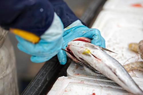 美しい体の色と翼のように広がるムネビレが特徴のホウボウ。古来、お殿様が好んで食べたことから、君魚の別名をもつ。非常に淡白な味わいの白身で、肝を添えて刺身で食べると絶品である。