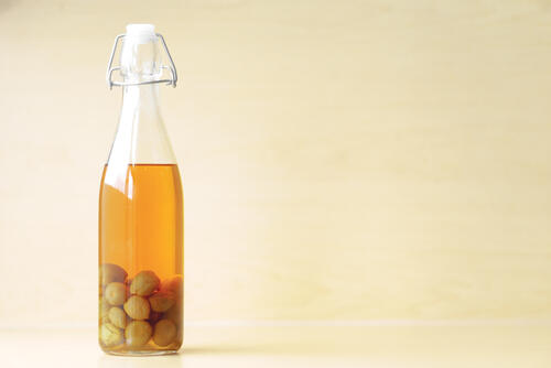 梅シロップを入れておく保存瓶は必ず消毒しておこう。消毒のやり方には、沸騰したお湯をかける方法、アルコール度数が35度以上のお酒(焼酎など)を入れて拭く方法などがある。なお、保存瓶を消毒したら完全に乾かせておこう。水分が付着しているとシロップが発酵しやすくなってしまう。