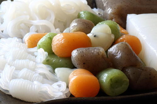 味付け前の一般的な玉こんにゃくは白っぽい色をしているが、あらかじめアレンジされた玉こんにゃくも販売されている。カラフルな三色玉こんにゃくなるものも有名だ。天然色素で着色されていたり、かぼちゃやほうれん草などの食材を練り込んで作られていたりと製法もさまざま。彩り豊かな玉こんにゃくは、弁当のおかずなどにも重宝しそうだ。