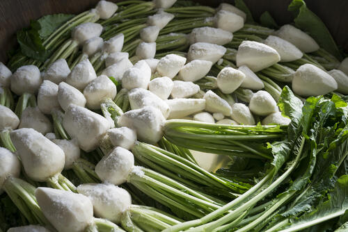 原料となるすぐきは、霜が降りる11月頃になると糖分がのる。そのため、11~1月に収穫されるのが常である。種をまいても、収穫できるのは20%以下という希少品なのである。