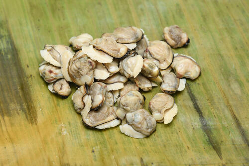 はまぐりごはんに使う食材は、はまぐり、しいたけ、人参だ。近年はまぐりは主に輸入品が多く、国産のはまぐりは全体の10%ほどととても少ない。そんな貴重な国産のはまぐりを使った郷土料理が味わえることこそ茨城県の強みでもある。近年は、鹿島灘はまぐりも希少になっていることから、計画的に漁が行われていて、はまぐりを守る活動も盛んである。はまぐりごはんに合わせる食材はしいたけや人参が定番だが、ほかに菜の花を合わせても彩りのよい一品となる。
