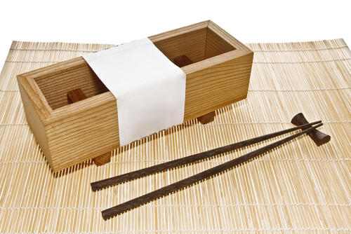 炊き立てのごはんをすし桶に入れて、酢飯を作っておく。すし箱を用意し、バランをひいた寿司箱に酢飯を詰めていく。バランを敷くことで、木枠に酢飯がくっつくのを防ぐうえに、殺菌効果があるのだ。酢飯の上に、腹が上になるようにもろこを敷き詰めていき、上から押しぶたでしっかり押す。また、もろこを並べる際に彩りとして錦糸卵を交互に詰めていくのもおすすめだ。