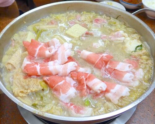 白菜の漬物を使った発酵鍋「酸菜白肉鍋」は、人気の火付け役。中国東北地方が発祥で、白菜を塩だけで乳酸発酵させた漬物を使った鍋のこと。豚のバラ肉を入れて食べるのが基本だ。古漬けになって酸味が増した漬物を使うのがポイントで、酸味とコクのバランスが癖になる。