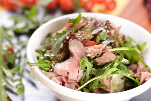 上質な葉山牛をローストビーフにして贅沢なサラダにするのもいいだろう。葉山牛のもも肉のブロックに塩こしょうをし、フライパンで表面をこんがり焼いたら、アルミホイルで包んでミディアムレアに仕上げる。レタスやきゅうり、トマトなどを食べやすくカットし、皿にローストビーフとともに飾りつけ、好みのドレッシングをかけたら完成だ。彩りも鮮やかなので、おもてなし料理にもおすすめの葉山牛レシピだ。