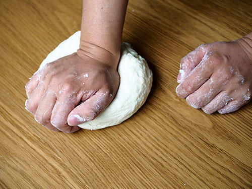 3. ロゼッタを焼く前の下ごしらえ、生地を何度も寝かせながらこねていく