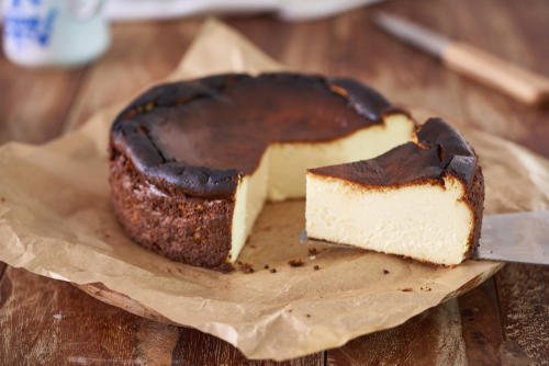 人気上昇中のバスクチーズケーキは、フランスバスク地方のサンセバスチャンの町にある店「ラ・ヴィーニャ」の名物である。焦げ目のついた表面は印象的で、一見しただけではチーズケーキとは思えないかもしれない。中身は濃厚で柔らかく、表面を焦がすことで生まれた香ばしさと相まって、絶妙な美味しさになる。コーヒーや紅茶はもちろんだが、ワインとのペアリングがおすすめだ。本場のフランスでもワインと楽しむ人が多いそう。ベイクドチーズケーキともレアチーズケーキとも違う新しいチーズケーキを、ぜひ試してもらいたい。