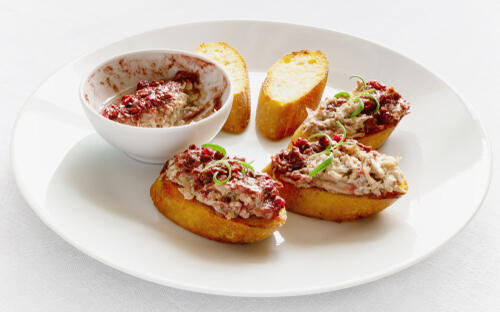 パンに塗って食べるのが最も定番なリエットの食べ方だ。トーストやフランスパンがおすすめだ。冷蔵庫で保存してある場合は油が固まっているため、しばらく常温に出して柔らかくしてから食べるとよい。保存食ゆえに塩気が強めであるから、少しずつ食べよう。