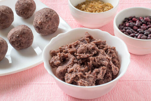 みつめのぼたもちに使用するあんの材料である小豆は、大豆や落花生のような脂質が主な豆とは違い、糖質と食物繊維で構成される炭水化物が主体だ。栄養素はタンパク質が豊富に含まれており、ミネラルやビタミンB群も含んでいる。そのほかの栄養素は鉄・ポリフェノール・サポニン・カリウムなど。このような栄養素を摂取すると期待できる健康効果は便秘解消やアンチエイジング、貧血予防、コレステロールの低下、冷え性の改善、貧血・高血圧予防だ。