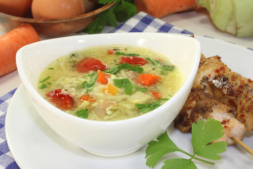 次に日常の献立におすすめの野菜を使用したスープを紹介しよう。日常の献立におすすめの野菜を使用したスープのひとつが、時短でできる卵と豆苗のスープだ。献立として一緒に食べるなら主菜は回鍋肉、副菜はトマトと玉ねぎの中華風サラダにすれば中華料理が食べたい気分のときにピッタリ。ちなみに豆苗は豆と緑黄色野菜の両方の栄養素を併せもつ栄養バランスのいい野菜だ。