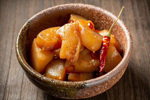 こんにゃくでもオランダ煮が作れる。なすと一緒にかさ増しとしてこんにゃくを加えて作るのもおすすめだ。こんにゃくの弾力のある食感と甘辛味で、ごはんのすすむ副菜となるだろう。こんにゃくでオランダ煮を作る場合は、こんにゃくを下茹でしフライパンで事前に炒めてから作るのがおすすめだ。こんにゃくの水分が跳ねやすいので、炒める際は注意しよう。あとは、通常のなすのオランダ煮と同じ合わせ調味料で煮込んでいくだけだ。