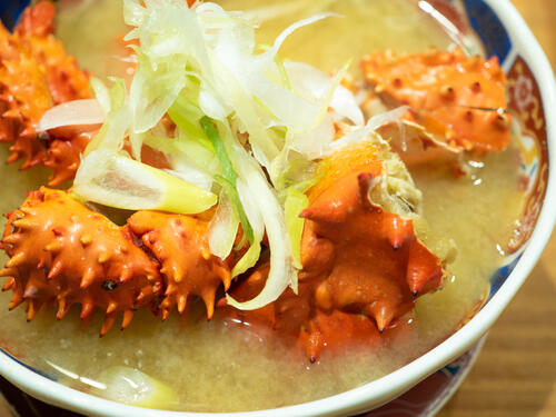 紹介した作り方のほかに、大根など好みの野菜をかにと一緒に昆布出汁で煮込み、味噌で味付けし豆腐を加えてもOK。調理が手軽にできるうえ美味しく味わえるので家庭料理としても人気がある。家によっては野菜を入れず、かに本来の出汁と旨みを味わうこともあるようだ。