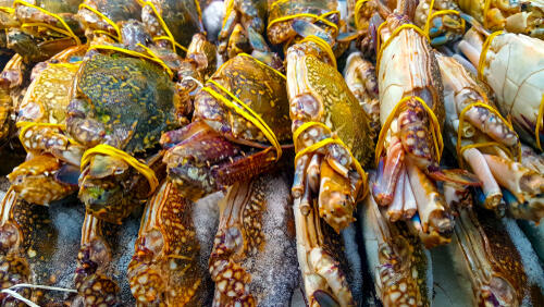 使用される食材でとくに有名なのが根室地方で水揚げされる花咲がにだ。花咲がには、かにという名前がついているが、正確にはヤドカリの仲間でタラバガニの近縁種である。昨今、花咲がにの漁獲量は減少しており収穫時期は6~9月の3ヶ月のみなので貴重な食材である。生の花咲がには色が濃い茶褐色だが、茹でると花が咲いたような鮮やかな朱色に変化するため花咲がにと名付けられたという説がある。甲羅全体にある棘(トゲ)も花咲がにの特徴のひとつといえるだろう。