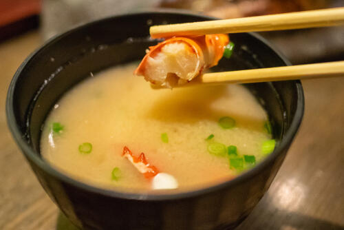 次にてっぽう汁の食べ方を紹介しよう。てっぽう汁に使用する食材は花咲がにの足が知られているが、ほかに毛がに・タラバガニ・ズワイガニなど、北海道でとれる別のかにを使用することもよくある。