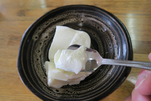 また、すいぜんを冷やしている間に、味噌、すりごま、黒砂糖をよく混ぜ合わせておき、すいぜん専用のゴマだれも用意しておく。すいぜんが固まったあと、型から取り外せばすいぜんの完成である。