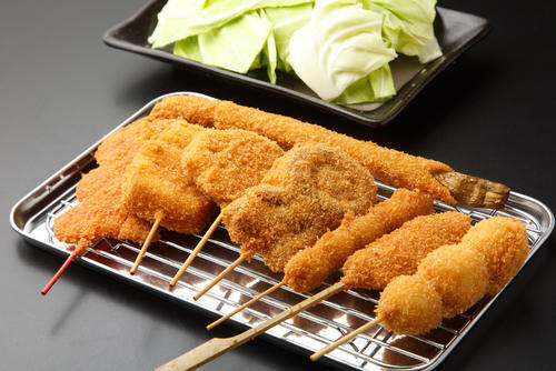 串カツといえば、大阪名物のひとつ。さまざまな素材を串に刺して揚げたもので、家族や仲間内で共有できるソースにつけて食べるのが一般的だ。みんなで同じソースを使うことから、「二度漬け禁止」という名台詞が生まれた。