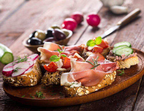 基本的にブルスケッタは手軽に作れるものが多いが、より簡単に作りたい場合は市販のバジルペーストを塗ってフレッシュトマトを飾ったり、クリームチーズを塗ってアンチョビやケッパーをのせたりするなど、火を使わないブルスケッタを作ってみるのがいいだろう。食材をバケットの上にトッピングするだけで味わえるので、急な来客時やもう一品ほしいときなどに最適だ。また、事前にバケットの上にのせる具材を作り置きしておくのも時短に繋がる。