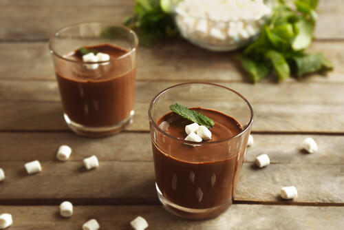 マシュマロ、チョコ、牛乳を加熱して混ぜ合わせたものを、カップに入れて冷やし固めるだけでできる。ミルクチョコやビターチョコだけでなく、ホワイトチョコや苺チョコなどを使うのもおすすめだ。