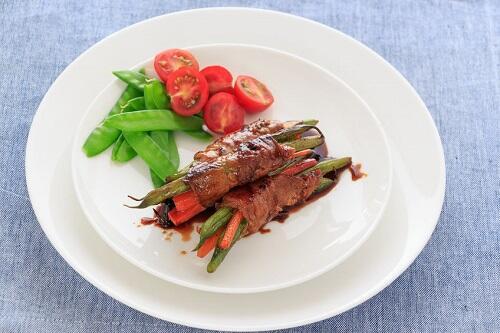 ここでは、肉巻き野菜の具材選びのポイントと作り方を紹介しよう。肉巻き野菜の肉は基本的に豚肉だ。肉を巻いた野菜まで火が通りやすいよう、薄切り肉を選ぼう。野菜は好みのものを選んでよいが、彩りや旬を考え選ぶとよい。色鮮やかな緑黄色野菜は栄養価も高いので一石二鳥だ。肉巻き野菜は下ごしらえが重要である。肉の巻き方を工夫し、火の通りにムラがないようにしよう。野菜に肉を巻き終わったら、しょうゆや好みのタレ、塩こしょうなどで味付けをしながら焼いたら完成だ。