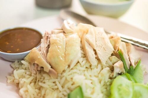 カオマンガイのメイン食材はごはんと鶏もも肉で、鶏肉の出汁で炊いたごはんの上に鶏肉をのせて、ピリ辛のタレをかけて食べるタイ料理である。タイでは国民食として親しまれているボリュームのある料理だが、カオマンガイは油を使わないため、ヘルシーに仕上がる。ごはんが1/2合、鶏肉1枚、甘辛ソースで一人前はだいたい500~550kcalといったところだ。カオマンガイに使われる鶏肉は高たんぱくで低カロリーだ。そのほかにもビタミンB2やビタミンB12などの栄養素が多く含まれている。