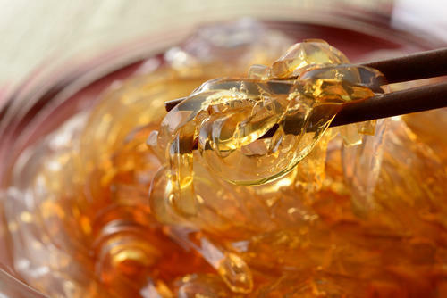 ところてんと似ている食品である寒天。どちらも原料はテングサやオゴノリといった海藻である。これらの海藻を真水で洗い天日干しすることを繰り返すと、だんだんと脱色されところてんや寒天の原料となるのだ。ところてんと寒天の原料は同じだが製法が異なる。ところてんはテングサをお湯で煮溶かし、濾して固めたもの。寒天は、乾燥させたテングサを煮溶かして固め、凍結と乾燥を繰り返して作られる。つまり、ところてんをフリーズドライにした食品だ。歴史にも違いがあり、ところてんは奈良時代頃から、寒天は江戸時代頃から食べられている。また、ところてんと違い寒天には種類がある。粉末や棒になっているなど形状に違いがあり、用途に応じて使い分けるのだ。