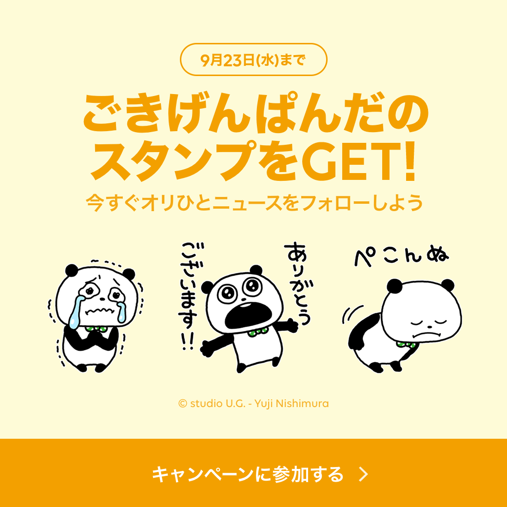 2020年8月25日(火)~9月23日(水)の期間中、キャンペーン対象の公式アカウントを新たに3つ以上「友だち追加」したユーザーを対象に「ごきげんぱんだ×選べるニュース」LINEスタンプキャンペーンを実施している。