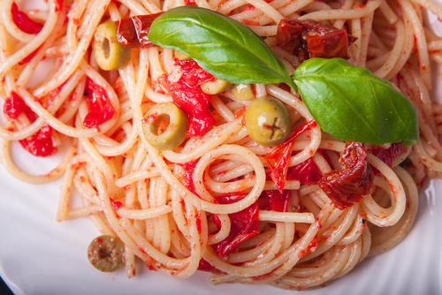 ドライトマトをパスタに使えば、ほかの具をさほど入れなくても十分に美味しく仕上げられる。簡単な例をいくつか見てみよう。
