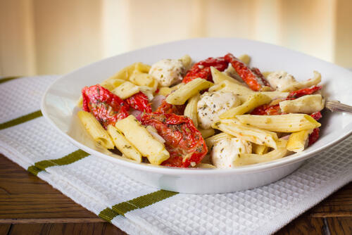 クリームパスタといえば白、あるいはカルボナーラのような黄色が定番だ。しかし、トマトを加えるのも美味しい。ドライトマトを潰して混ぜ込めば赤みがかったクリームになるほか、潰さずに加えるのも味や香りが目立って美味しい。たとえばホタテや鶏肉などの比較的淡白な食材がよく合うだろう。